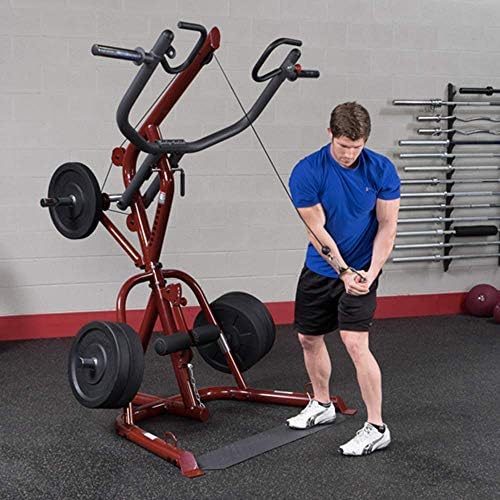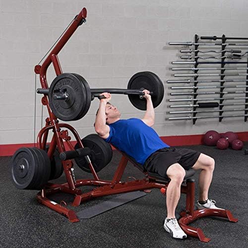 Perform shrugs, squats, dead lifts, biceps curls and everything in-between more easily and effective. With a revolutionary space-saving design the GLGS100P4 fits comfortably into most home and commercial settings. With an all-new, high-tech/high gloss anodized red finish, this gym not only stands out for its performance but also its looks. The swing arm/press arm station has a large radius to greater simulate a straight up and down motion. The press arm bar can also be raised to its highest position allowing the GLGS100 to be used as a pull-up/chin-up station. An adjustable knee lock-down makes lat pulldowns easier than ever while the low pulley station is perfect for curls and multiple row exercises. Attached weight horns make weight storage easy. The included premium GFID100, Flat / Incline / Decline Bench can slide in and out allowing for ease-of-use and a smooth transition from exercise-to-exercise while attached wheels make transport a breeze. Stand-alone design allows bench to be used completely independently of the gym system.