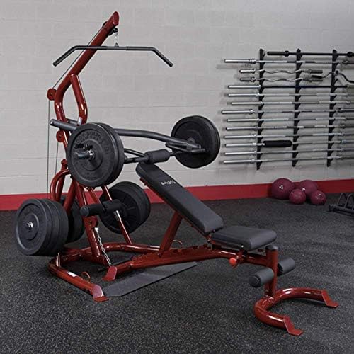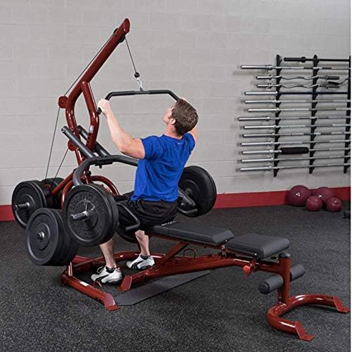 INCLUDES: Lat pulldown bar, revolving cable handle, and bench
