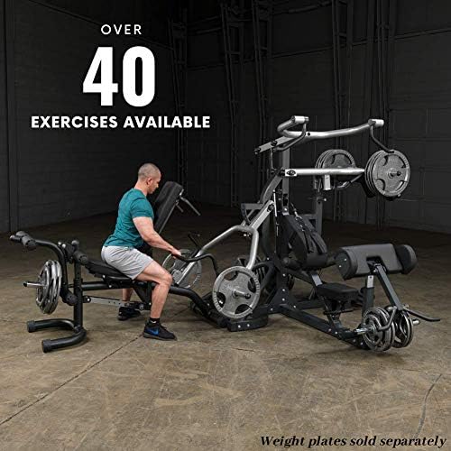 Body-Solid Free-Weight Leverage Gym with Squat Attachment and Olympic Leverage Flat Incline Decline Bench (SBL460P4) is designed to help you turn up the intensity of your workouts and achieve maximum gains in strength and size in a minimum amount of time. Perform over 40 exercises with one machine, replicated to feel like free weight movements but with the added safety of a leverage machine. Perform bench, incline, decline, and shoulder presses, pec flys, lat pulldowns, preacher curls, squats, calf raises, and much more, without needing to worry about finding a spotter. Each station adjusts to fit your size for proper positioning, with beneficial pre-stretch and full range of motion. The home gym machine’s extra heavy-duty mainframe is built from 3- by 3-inch 10- and 11-gauge high tensile strength steel with four-sided welded construction for exceptional strength and stability. Each leverage exercise station moves fluidly on pivot points that utilize commercial grade pillow block bearings and oversized bronze bushings for smooth, continuous movement. The 2- and 3-inch thick tear-resistant DuraFirm seat, back, and shoulder pads support you comfortably through the heaviest routines and are to never bottom out. This package includes the basic leverage gym, LSA50 squat attachment, and FID46 bench. The gym measures 107 by 126 by 83 inches (L x W x H) and the bench measures 74 by 28 by 32 inches (53 inches inclined). The Body-Solid Free-Weight Leverage Gym is backed by the Body-Solid Lifetime In-Home and Full Commercial .