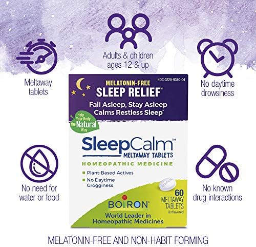 • Boiron SleepCalm Sleep Aid for Deep, Relaxing, Restful Nighttime Sleep – Melatonin-Free and Non Habit-Forming – 60 Count