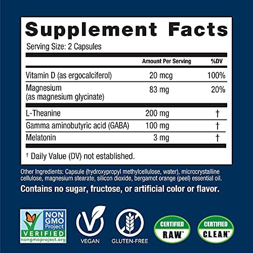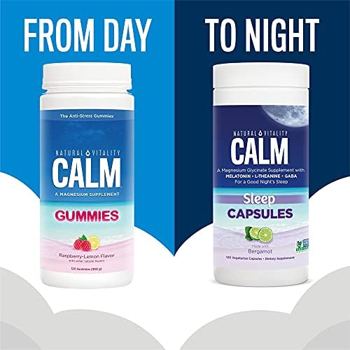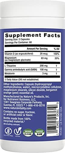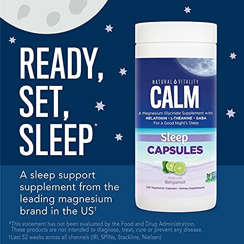 Featuring magnesium glycinate along with L-Theanine (a relaxing amino acid), GABA (a non-protein amino acid) and melatonin. These vegetarian capsules also include Bergamot Orange essential oil for a relaxing effect. Natural Vitality CALM night Capsules were developed specifically for those times we need support. These gluten-free, non-GMO capsules support healthy magnesium levels. The magnesium glycinate is more absorbable and easier on the stomach than magnesium oxide. Suggested Use: Ages 13 years and older, take two capsules before bedtime. *These statements have not been evaluated by the Food and Drug Administration. This product is not intended to diagnose, treat, cure, or prevent any disease.
