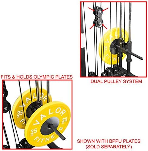 ADDITIONAL- Max weight load of 250 lb. Includes 4 plastic Olympic adapter sleeves to convert the standard 1″ pegs to 2″ Olympic pegs. An essential addition to any light-commercial or home gym. Warranty, 3-year frame, 1-year cable. Arrives in 3 separate boxes.